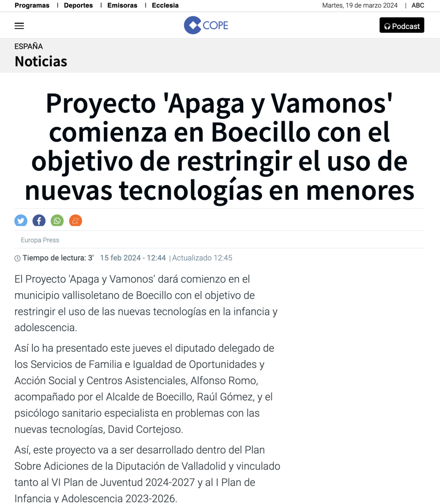 Aparición del proyecto en El Norte de Castilla (15/02/2024)
